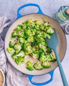 - Filtered water: A touch of water helps the broccoli to soften up as it cooks. You can use broth if you want to add more flavor.