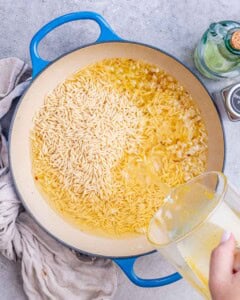 - Stir the orzo often as it cooks so that it doesn’t stick to the bottom of the pan.