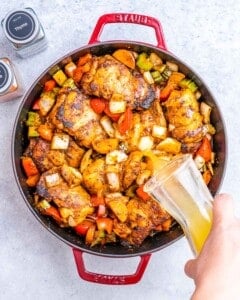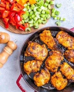 - Avocado oil: Can tolerate the high heat needed for browning the chicken thighs. You could use any other oil if preferred.
