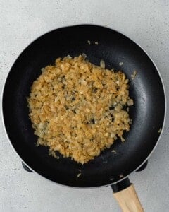 Step 1: In a pan over medium heat, add the oil and then the chopped onions. Cook and stir every 2-3 minutes until the onions are soft and caramelized to a golden brown color. This will take about 30-35 minutes.