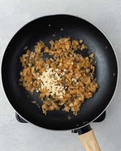 Step 2: Before the onions are fully caramelized, add the minced garlic and cook for a few minutes.