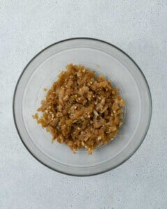 - Place the caramelized onion into a mixing bowl and place it in the fridge until it reaches room temperature.