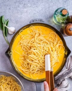 This creamy pumpkin pasta is ready in 20 minutes, with flavors of sage and garlic for the coziest fall meal.