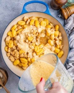 No! The gnocchi are cooked directly in the pan with the chicken broth. It’s best to do it this way as the gnocchi will release starch into the broth, helping the sauce to thicken nicely.