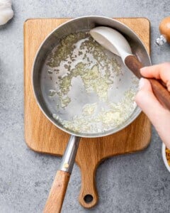 Step 2: In a saucepan, heat the vegetable oil, then sauté the garlic for 30 seconds. You do not want to burn the garlic, so keep a close eye on it or cook it at low heat.