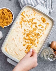 Step 5: Transfer into your prepared baking dish and spread into an even layer. Sprinkle it with crushed chips.
