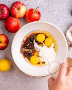 - Brown sugar: The slight caramel flavor of brown sugar works well with the apples. You can swap it for superfine sugar if you’d like the cake to taste sweeter.