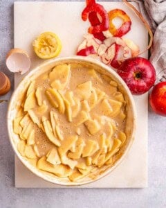 Using a mandoline to slice the apples will help you get really thin, even slices which is key to the texture of this cake. If you don’t have a mandoline but have a very sharp knife and are confident you can slice thinly, feel free to do it by hand.