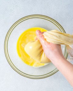 - Grab a bowl and place a cheesecloth over it. Pour the mixture into the cheesecloth and squeeze out all the liquid.