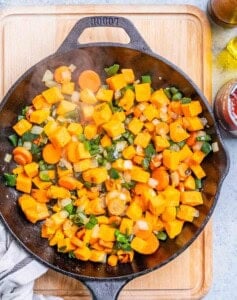 - Carrots and sweet potatoes: Make sure they’re evenly diced so they cook at the same rate.
