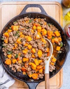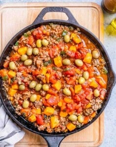 This Mexican Picadillo is a one-pan dish of ground beef, sweet potatoes, and olives simmered in a spiced tomato sauce. It’s packed with flavor and so simple to make for a comforting and satisfying dinner.