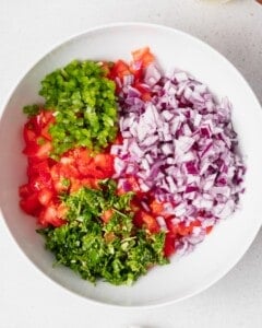 Below are the ingredients you’ll need to make this authentic Pico de Gallo recipe. The full quantities are listed on the recipe card further down the post.