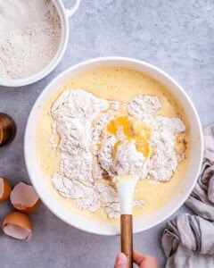 ✏️ If your flour is lumpy, you can sift the dry ingredients together with a mesh strainer, or use a whisk to help stir everything together and break up any lumps.