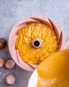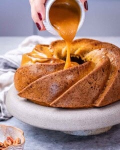 ✏️ I find it’s a good idea to let the cake sit in the bundt pan for 10 minutes after it’s baked so it can firm up a bit before turning it out, which prevents it from cracking when you do this.