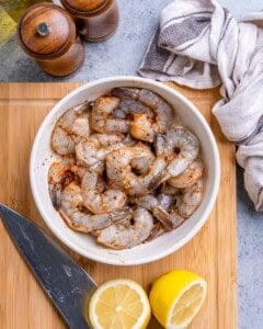 Yes! Thaw overnight in the fridge for the best results. If you’re in a time crunch, you can soak frozen shrimp in a bowl of cold water for 15 minutes to thaw, then drain.