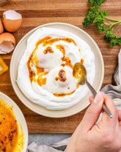 These Turkish Eggs are made with a creamy garlic-yogurt base, topped with runny poached eggs and a spiced chili butter. Ready in just 15 minutes, this easy, restaurant-quality breakfast or brunch is high in protein and full of flavor.